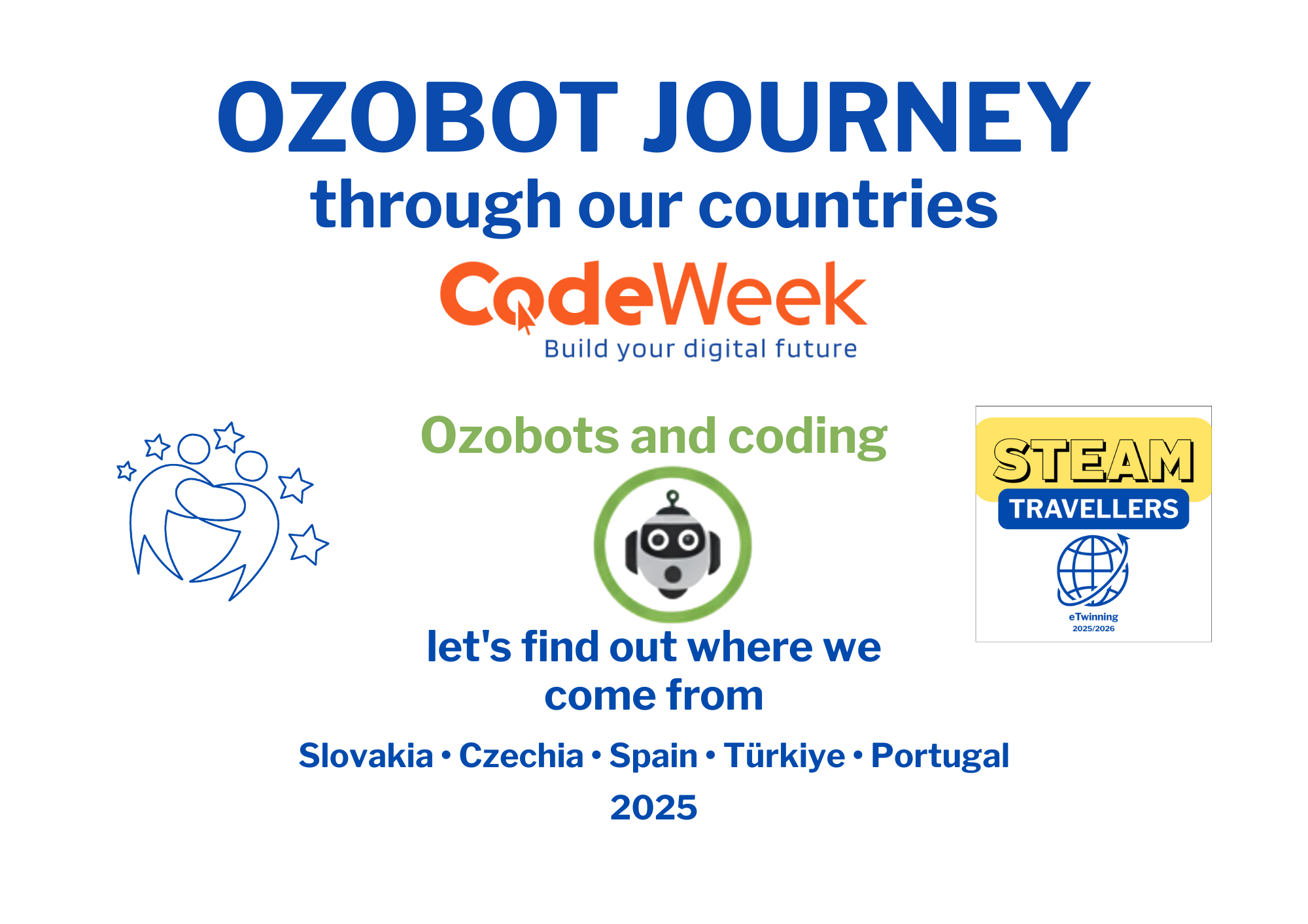 V rámci mezinárodního eTwinningového projektu "STEAM TRAVELLERS" se účastníme akce s názvem "Ozobot Journey through Our Countries". Studenti pomocí permutační (transpoziční) šifry zašifrují informace o své zemi, škole a městě, ve kterém žijí. Poté naprogramují trasu pro Ozobota (Bit+), který projede místy uvedenými ve zprávě. V mezinárodních týmech (SK → SPA → CZ → PT → TR → SK) budou studenti šifrované zprávy dešifrovat, sdílet programy a natáčet videa. Výsledkem bude eBook obsahující zašifrované a rozšifrované příspěvky, fotografie, programy a videa.